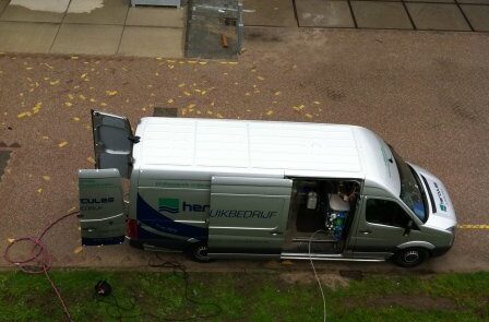Onze bedrijfswagens zijn compleet uitgerust, zodat wij uw opdracht volledig self-supporting kunnen uitvoeren.